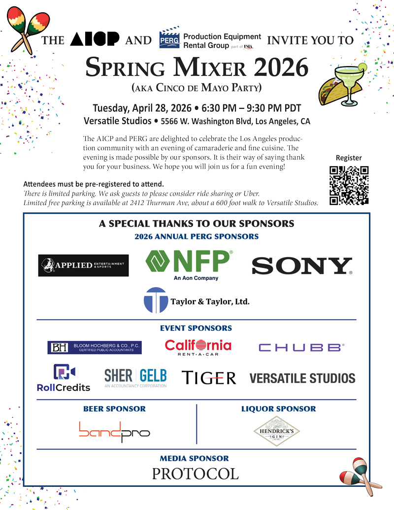 The AICP and PERG are delighted to celebrate the Los Angeles production community with an evening of camaraderie and fine cuisine.