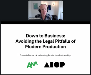 The afternoon ended with a look at some of the legal issues that arise when working directly with marketers. In “Down to Business: Avoiding the Legal Pitfalls of Modern Production, Attorneys Jeffrey Greenbaum of Frankfurt Kurnit Klein & Selz and Roberta Wolff offered a candid look at the most common legal pitfalls in direct production partnerships, from business affairs friction points to the contractual frameworks that protect creative output. Agility, they made clear, is only an asset when it's legally sound.