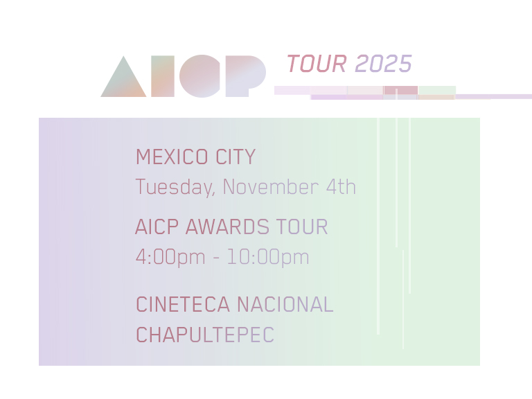 The 2025 AICP Awards Tour concludes next month with stops in Mexico City (November 4th), Dallas (November 5th), and Chicago (November 20th). Get all of the Details below and we look forward to seeing you "on the road."